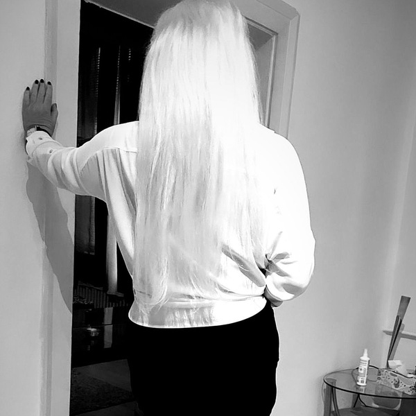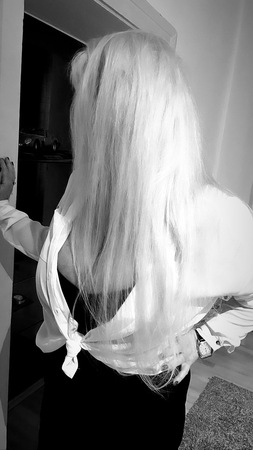 Haare:blond, rückenlang, glatt